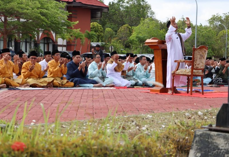 Kegiatan yang berlangsung di Halaman Kantor Bupati Bintan, Kamis (26/3/2026), bertepatan dengan 6 Syawal 1447 Hijriah itu diikuti langsung oleh Bupati Bintan Roby Kurniawan, Wakil Bupati Deby Maryanti, serta ratusan jemaah yang tampak khusyuk memanjatkan doa agar segera diturunkan hujan.
