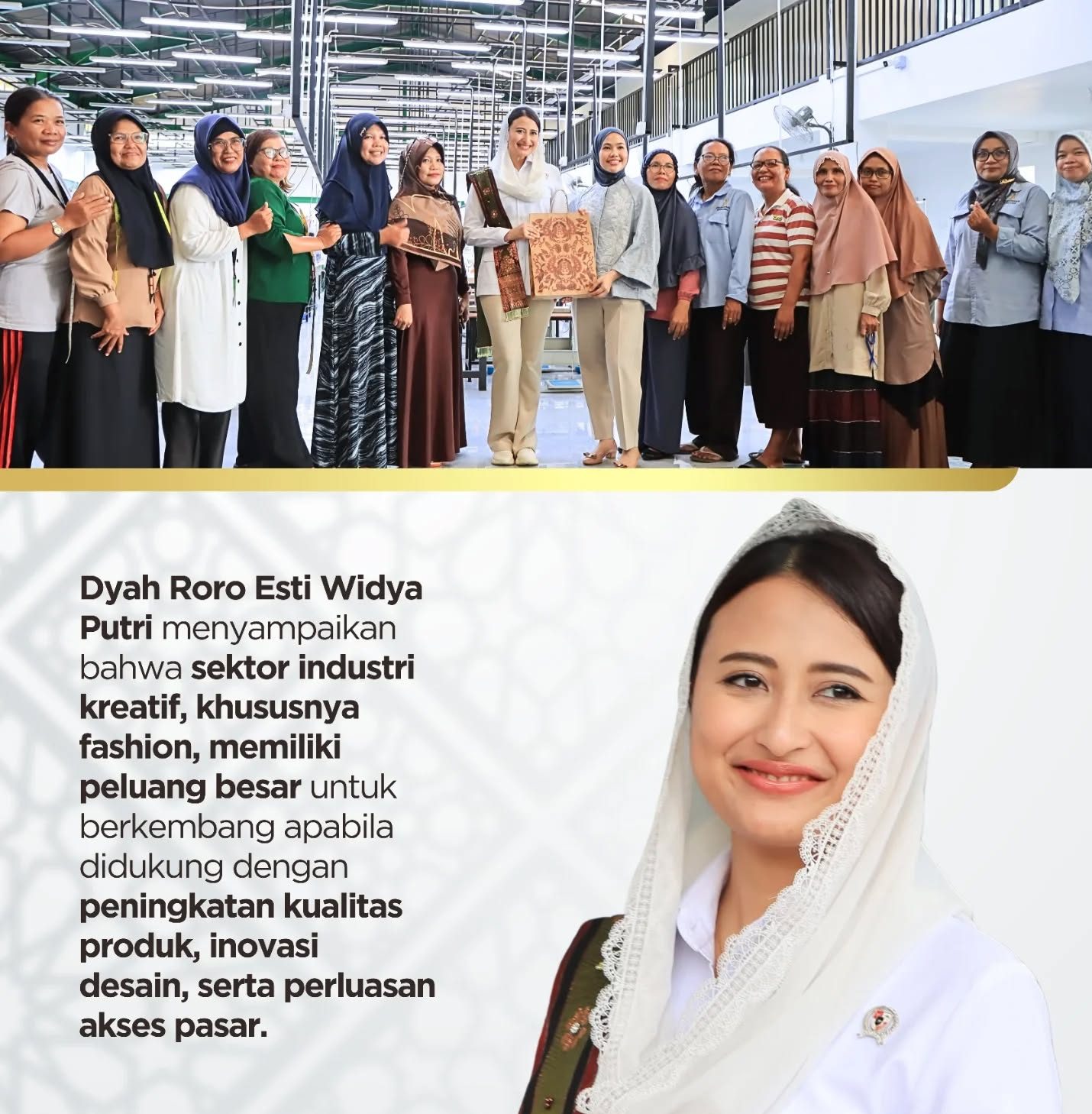 Dyah Roro Esti Widya Putri menyampaikan bahwa sektor industri kreatif, khususnya fashion, memiliki peluang besar untuk berkembang apabila didukung dengan peningkatan kualitas produk, inovasi desain, serta perluasan akses pasar.
