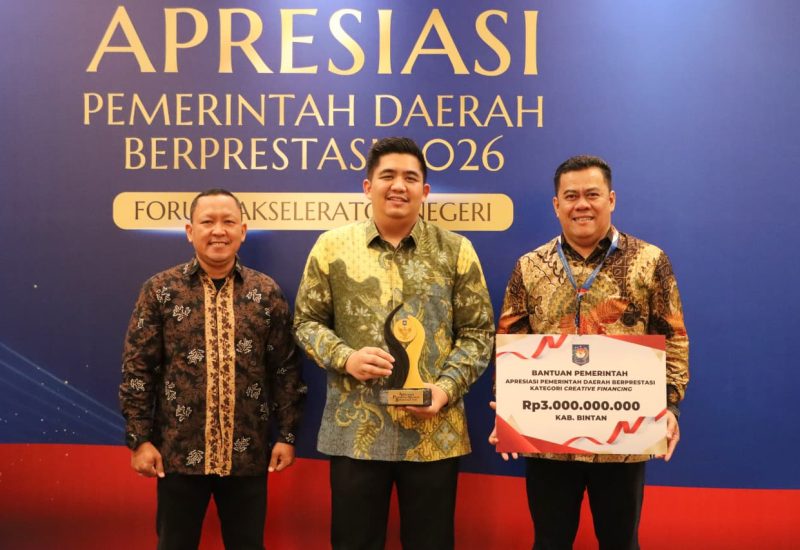 METROBATAM.COM, BINTAN — Catatan membanggakan kembali ditorehkan Kabupaten Bintan. Hal tersebut tercermin usai Bupati Bintan Roby Kurniawan menerima penghargaan sebagai Terbaik I kategori creative financing pada ajang Apresiasi Pemerintah Daerah Berprestasi 2026. Penghargaan bergengsi yang diselenggarakan oleh Kementerian Dalam Negeri (Kemendagri) RI tersebut berlangsung di Wyndham Opi Hotel Palembang, Sumatera Selatan, Sabtu malam (25/04/2026).