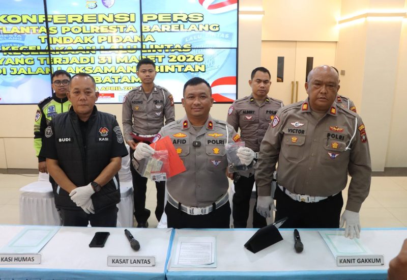 METROBATAM.COM, BATAM – Satuan Lalu Lintas (Satlantas) Polresta Barelang menggelar konferensi pers terkait pengungkapan kasus kecelakaan lalu lintas yang terjadi di wilayah hukumnya. Kegiatan tersebut berlangsung di Lobby Mapolresta Barelang, Sabtu (4/4/2026), dipimpin langsung oleh Kasat Lantas Kompol Afiditya Arief Wibowo, didampingi jajaran pejabat terkait.