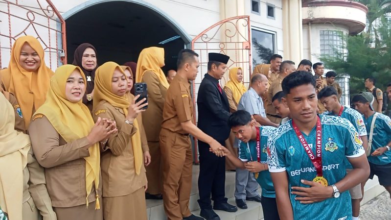 Usai meraih gelar juara, skuad Persibri Batang Hari mendapat sambutan hangat dari Pemerintah Kabupaten Batang Hari di halaman Kantor Bupati.