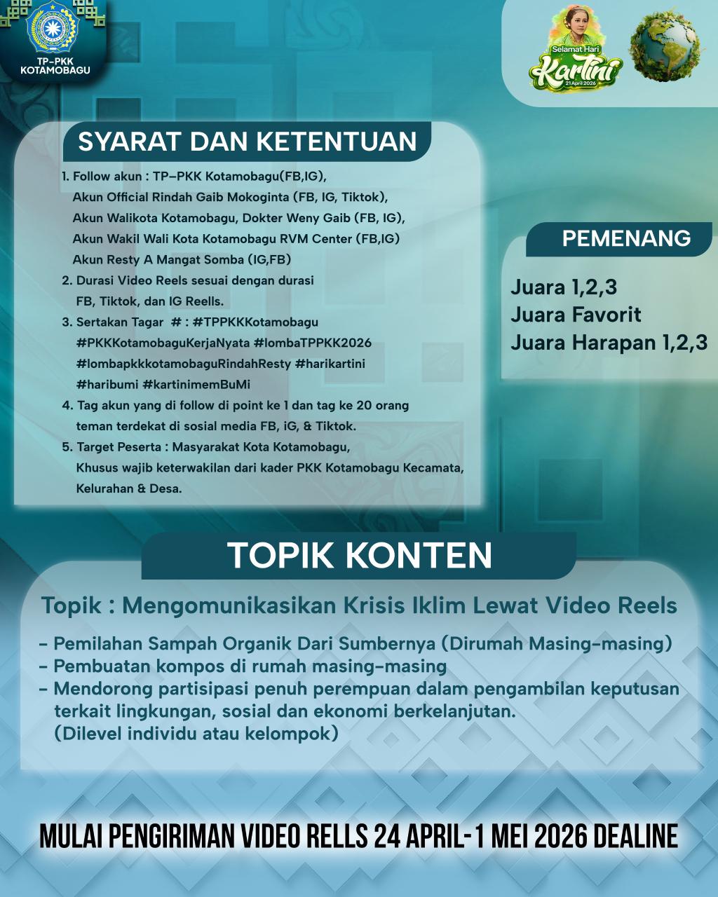 Melalui lomba video reels ini, peserta diajak untuk menyampaikan pesan edukatif tentang kesetaraan gender, pola asuh di era digital, serta kepedulian terhadap lingkungan. Program ini juga diharapkan mampu melahirkan agen perubahan yang berkontribusi pada keberlanjutan lingkungan.
