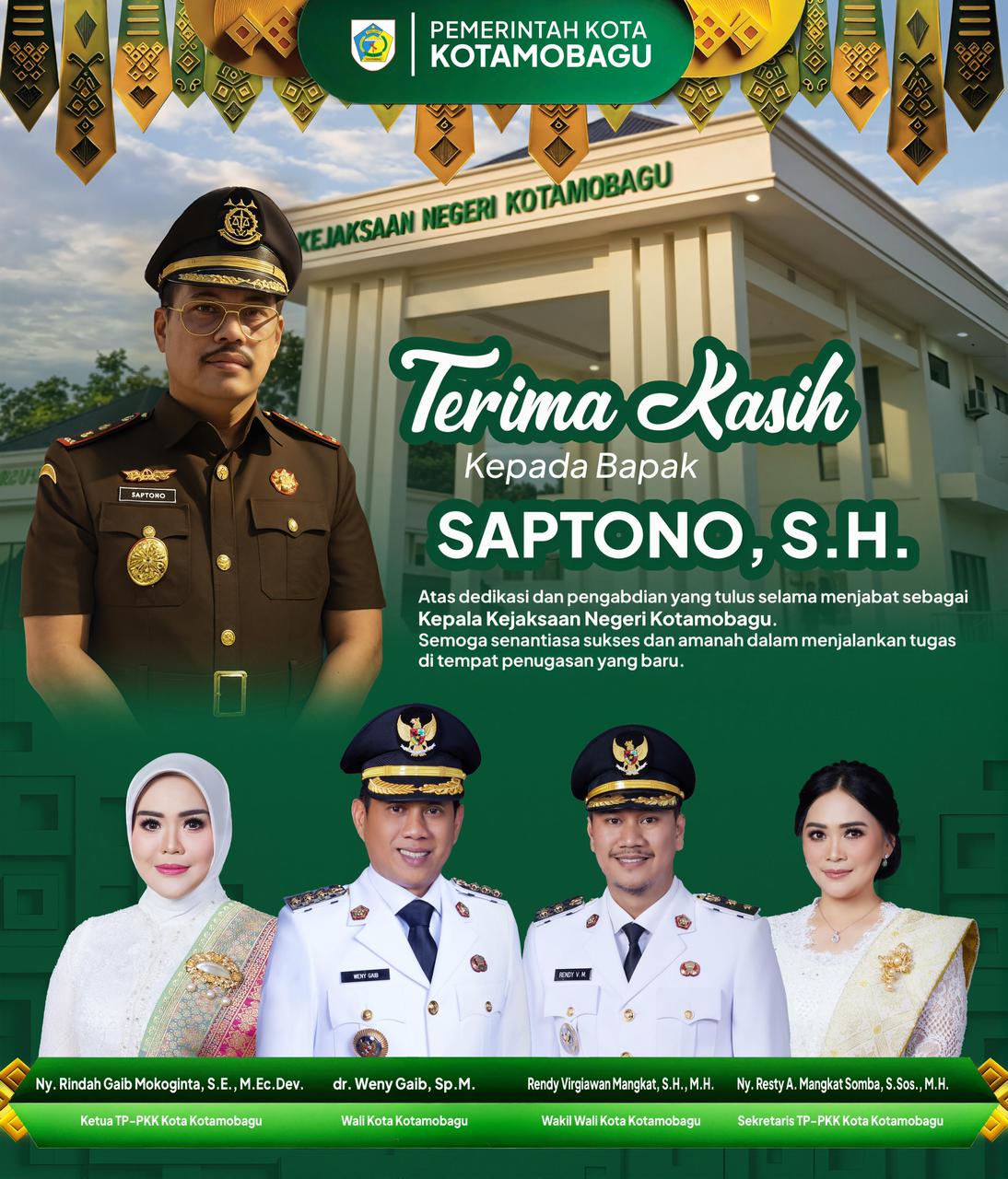 Pada kesempatan tersebut, Weny juga menyampaikan apresiasi kepada pejabat lama, Saptono, atas dedikasi dan kontribusinya selama menjabat sebagai Kajari Kotamobagu.