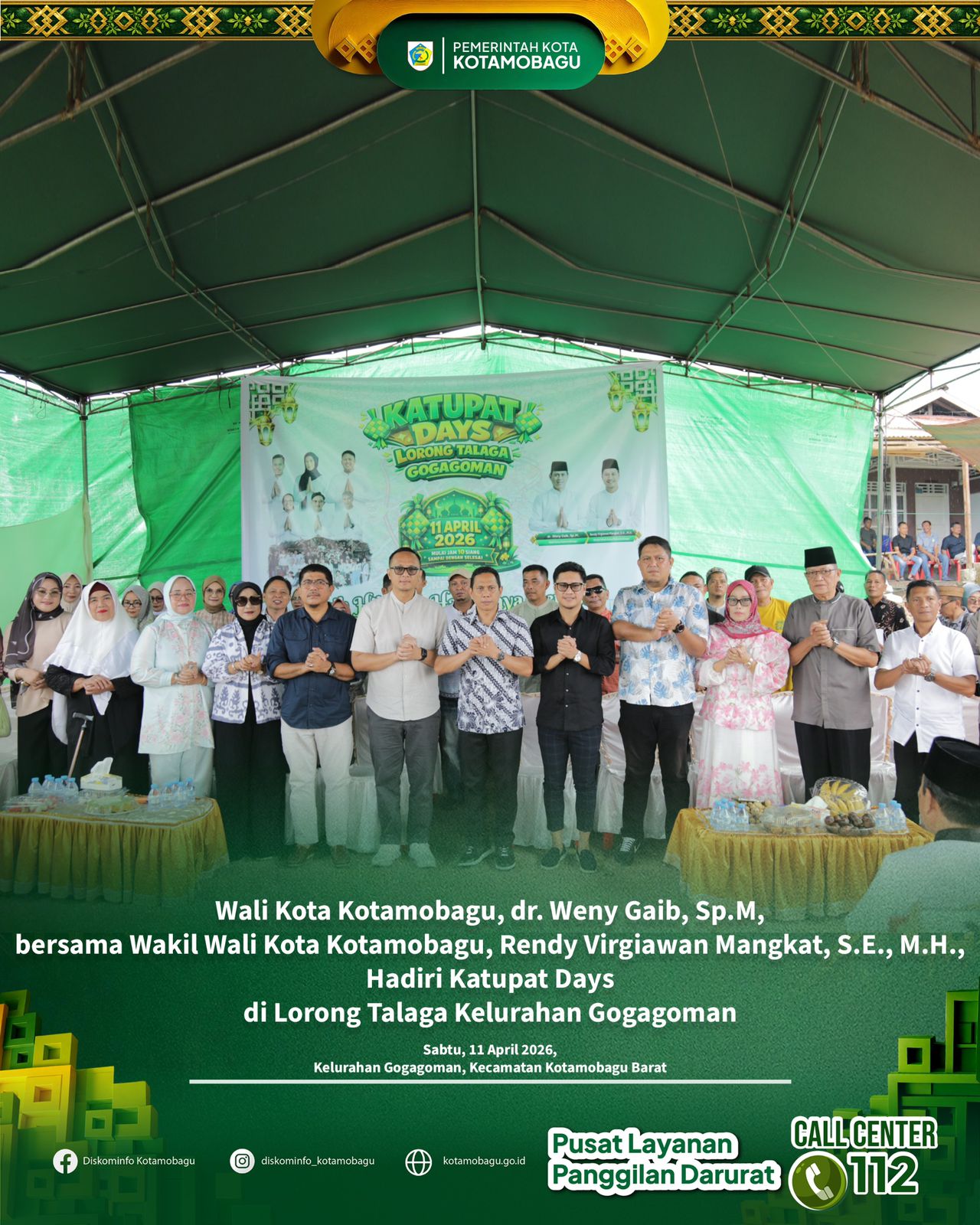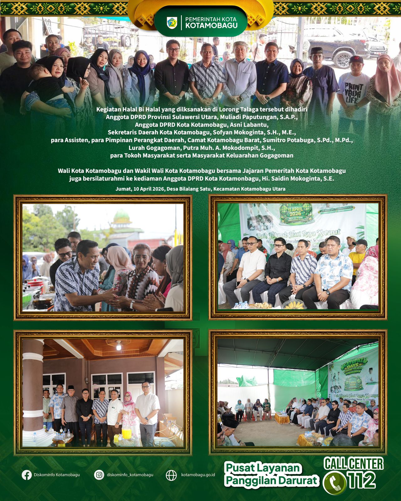 Metrobatam.com, Kotamobagu – Wali Kota Kotamobagu, dr Weny Gaib, SpM., bersama Wakil Wali Kota, Rendy Virgiawan Mangkat, SH.MH., hadiri perayaan Halal Bi Halal, bertempat di Lorong Telaga, Kelurahan Gogagoman, Kecamatan Kotamobagu Barat, Sabtu (11/4/2026).