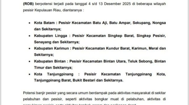 Tag: BMKG Peringatkan Potensi Rob di Kepri 4–13 Desember