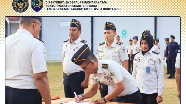 Lapas Kelas IIA Bukittinggi Gelar Upacara Penandatanganan Perjanjian Kinerja dan Komitmen Bersama Seluruh Petugas