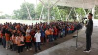 METROBATAM.COM, BATAM – Wali Kota Batam, Amsakar Achmad, memimpin apel bersama Satuan Tugas Red